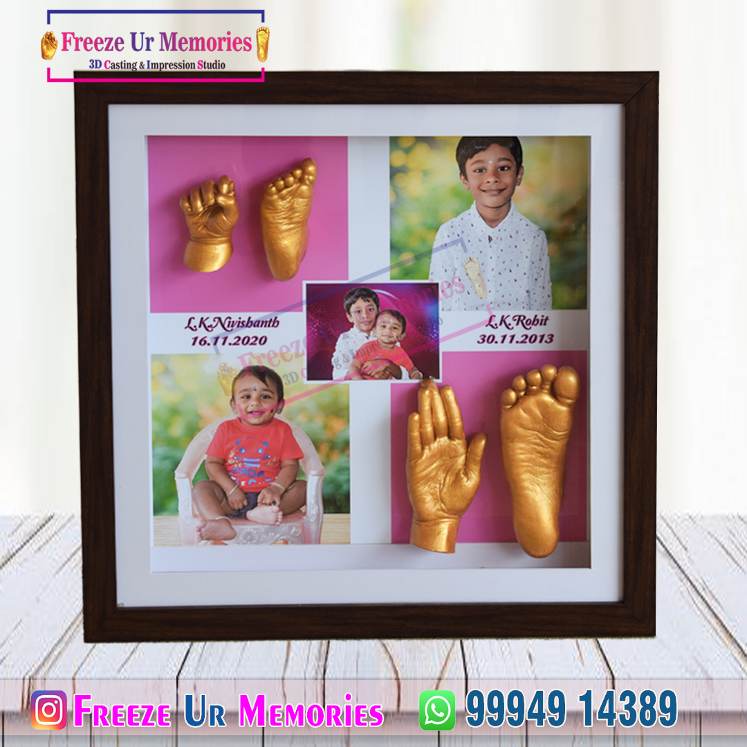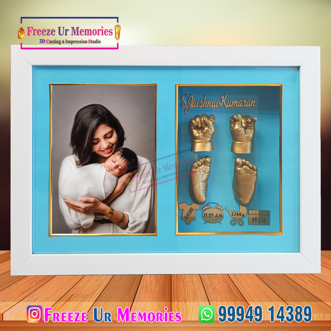 Freeze Ur Memories is a government-certified 3D casting and impression studio in Coimbatore, serving families since 2018. With 7+ years of experience, we specialize in baby hand and feet impressions, couple casting, and family 3D memories using safe, baby-friendly materials. We offer free home service all over Tamil Nadu, ensuring comfort and convenience for parents. All our creations are fully customizable to client ideas and come with a lifetime guarantee. Trusted by happy families, Freeze Ur Memories helps you preserve your most precious moments forever.