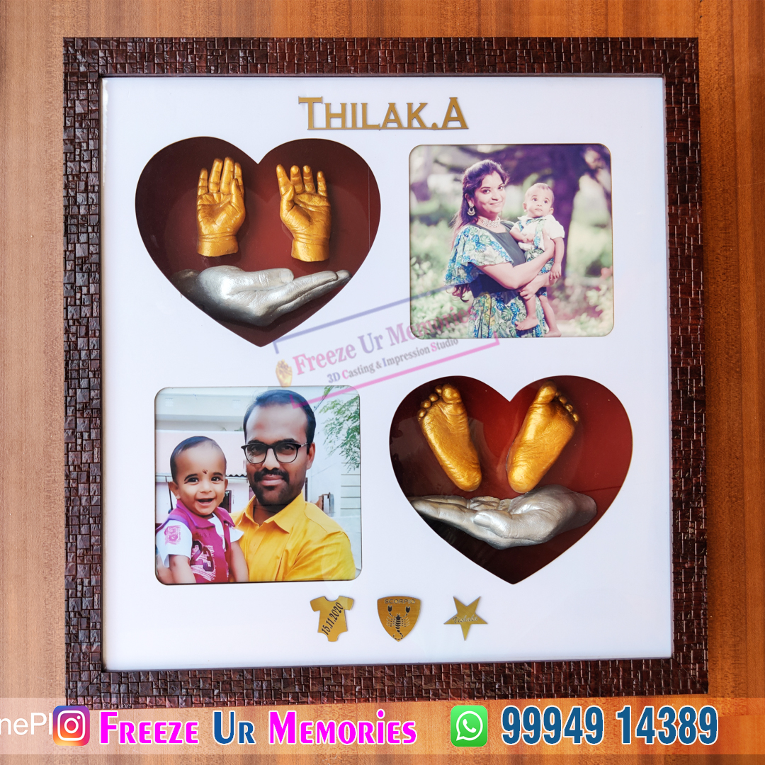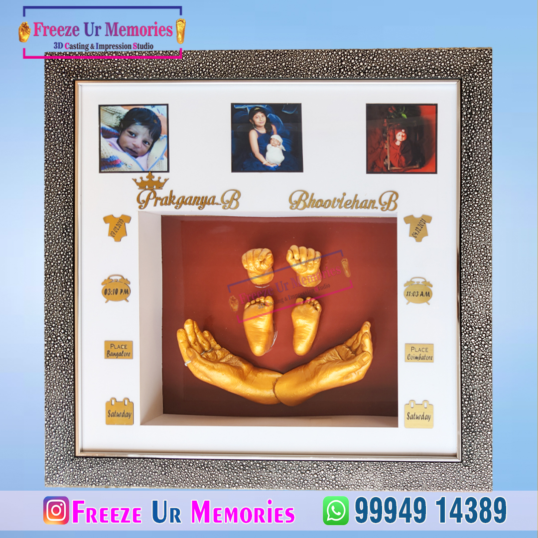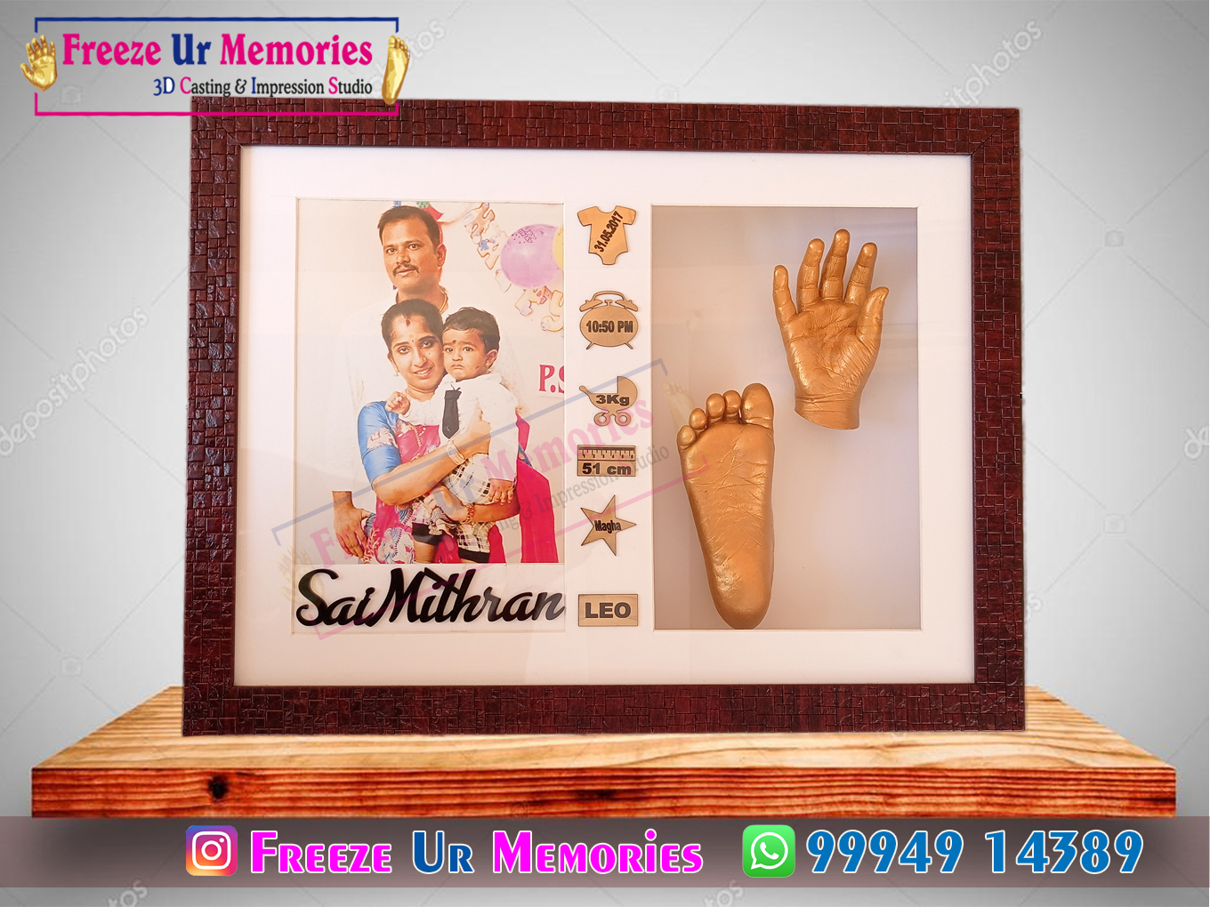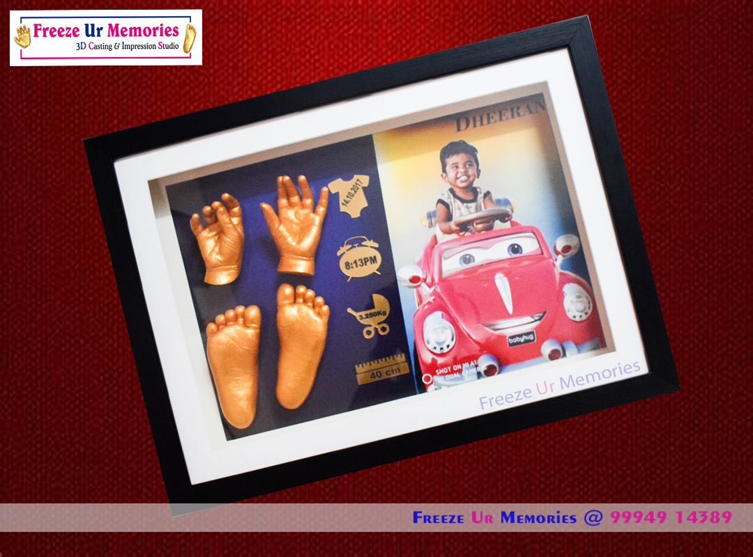 Littlest hands and feet make the biggest impressions on our heart. And when they are of your little baby, what better way to preserve them than to cast them in a mold and frame them for eternity with this frame.