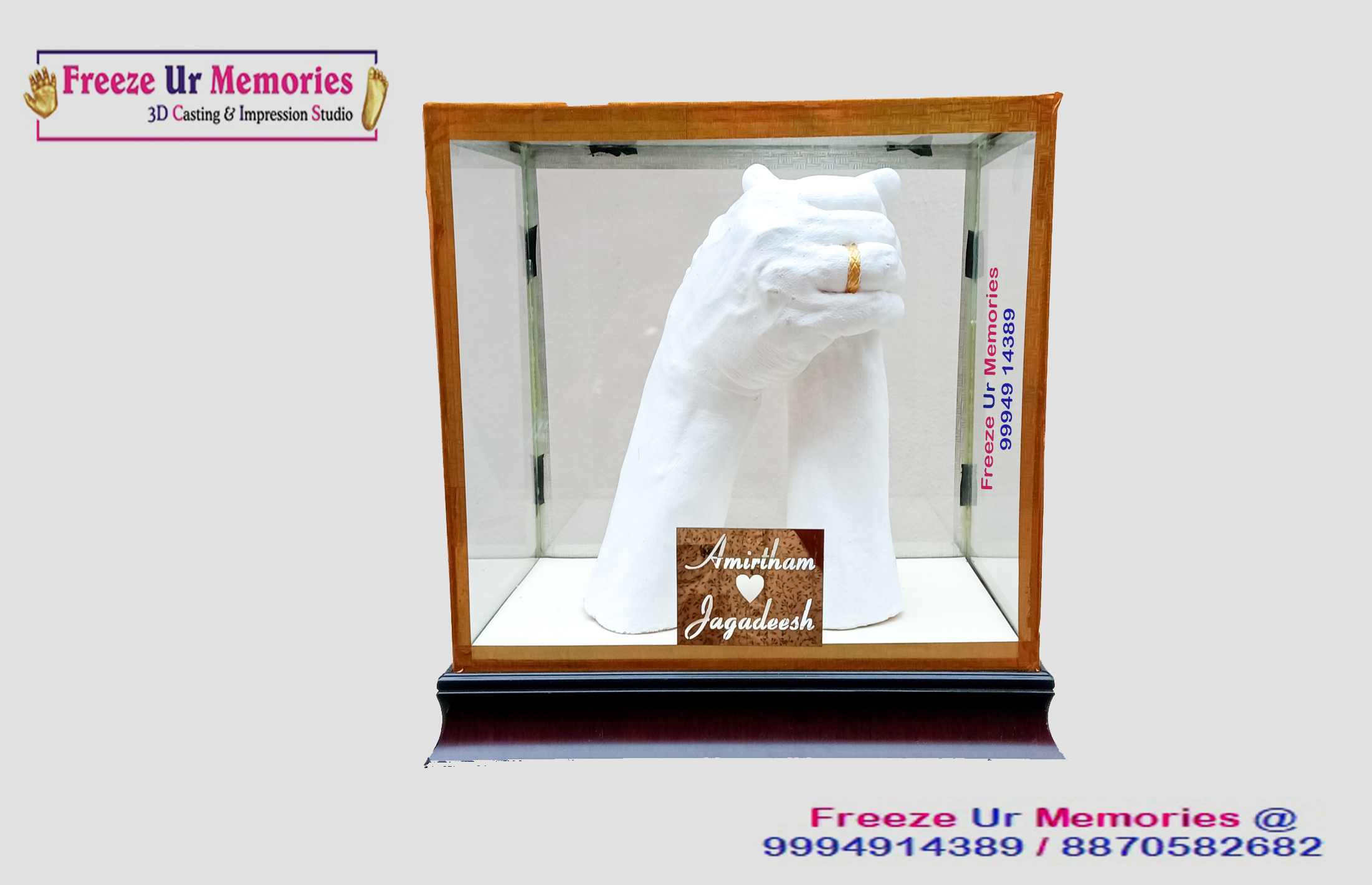 People hold hands not because of possessiveness, to maintain touch. It is about saying something without having to speak it out loud. It is about “I want you with me, forever ” and “don’t go”. And this life size tabletop piece does just that.