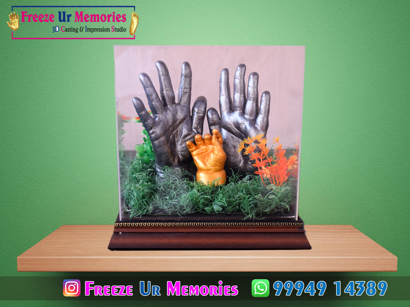 The keen desire to get the 3D baby hand & foot casting can be felt the moment you hold your bundle of joy in your arms for the first time. Just the touch of your baby’s tiny hands & feet fills your heart with love & care & nothing else can compare with this feeling. The moment seems so cherished that you wished the time stood still. The beautiful feeling of becoming a parent brings great happiness along with extreme responsibility & you feel so ready to enjoy it all. First Impression specializes in providing best hand & foot casting services that help you preserve this precious moment forever.